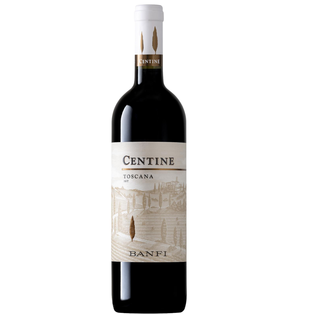 Centine, pronounced CHEN tee nay, takes its name from a 19th century farmhouse on the Castello Banfi vineyard estate and represents the gateway to Banfi wines. This entryway is depicted on the label with the winding road, lined by Cyprus trees leading up to the 12th Century Castello.